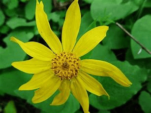 This perennial herb is native to continental Europe. It is also known as leopard’s bane, mountain tobacco, and mountain arnica. Arnica montana is a member of the aster family, and is closely related to the sunflower and daisy. The plant reaches heights of 12” to 24”; it is hardy and can be grown successfully in Zones 4 to 9. It grows best in full sun, but can do well in partial shade. The stems carry single yellow/orange flowers from mid-spring to the end of summer. The plant can be slow to start from seed but can be propagated by division or from cuttings.