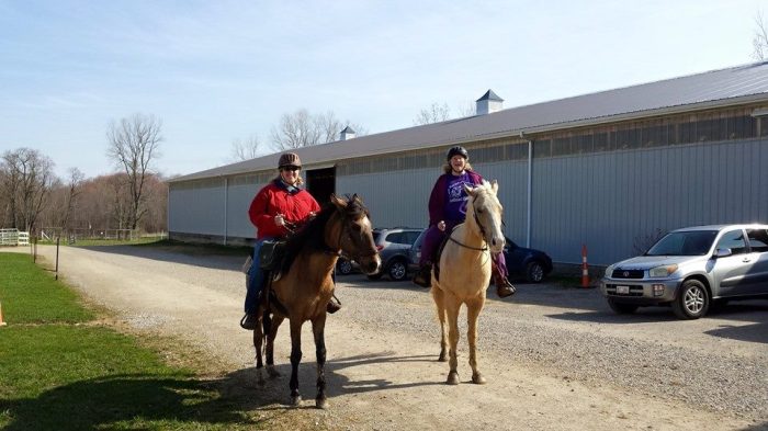 • Wear your safety gear, including your helmet and proper riding boots (a 1″ heel is recommended). Additional gear could include reflective wear for riding on the trails/roads and/or a safety vest.