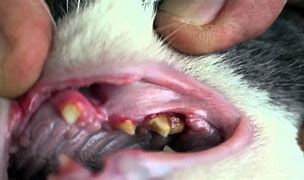 - Gums growing over teeth: Pet parents should be concerned if their cat’s teeth look like they’re sinking below the gum line. This is a clear sign of a dental disease called tooth resorption. Tooth resorption occurs when a tooth slowly deteriorates and gets absorbed back into the jaw bone. It’s a long, painful process that most older cats experience at some point in their life.