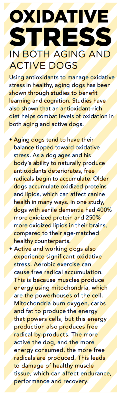 Daily antioxidants are known to support canine health in a variety of beneficial ways. They promote a healthy immune response, support eye health in aging dogs, and contribute to a normal inflammatory response. Antioxidants also help neutralize potentially harmful free radicals.