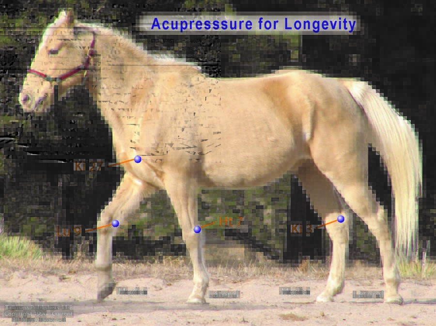 Living a long time is one thing. Living a long time in good health is another. We all wish for our senior horses to live long and well. Chinese medicine is known for its attention to longevity. Ancient Chinese doctors knew that longevity is dependent on a robust flow of life-promoting energy (chi), blood, and the circulation and balance of all the vital substances needed to nourish the body. This is a tall order, acupoints known to enhance longevity have been used for thousands of years.